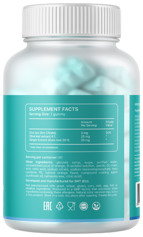 Цинк является важным минералом, необходимым для правильного роста и развития ребенка. Он поддерживает здоровую иммунную систему, помогает бороться с инфекциями и уменьшает продолжительность и тяжесть различных респираторных заболеваний, например, таких как простуда или грипп. Этот минерал необходим для образования антиоксидантных ферментов.
