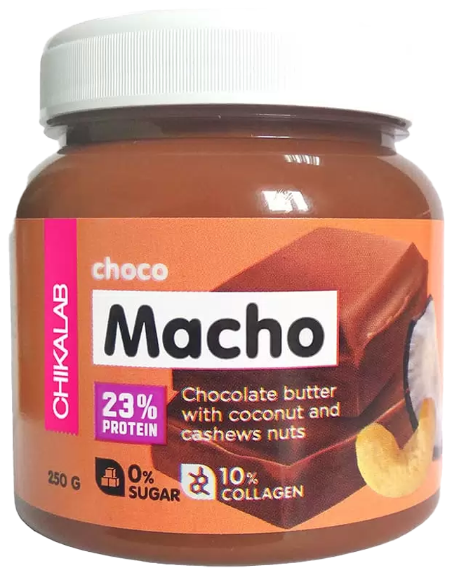 Паста шоколадная с кокосом и кешью Macho от ChikaLab - это натуральный продукт с великолепным вкусом, сочетающим в себе нежный шоколад и ореховые оттенки с кокосовыми нотками.